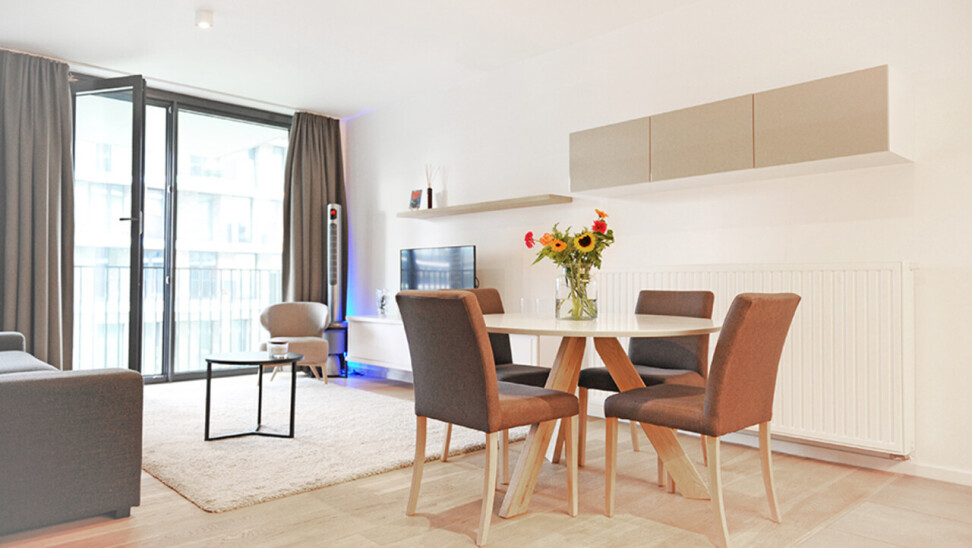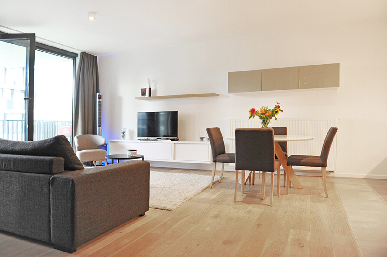 prachtig gemeubeld appartement op de 3 de verdieping van project cadiz gelegen op het Eilandje , indeling hal apart toilet badkamer met ruime inloopdouche en lavabo met meubel ,living met ramen tot tegen de vloer aangrenzend zuid gelegen terras ,volledig ingerichte keuken met berging , 2slaapkamers, ondergronds nog een kelder, extra parking te huur aan 125 € . Het appartement is volledig gemeubeld en voorzien van alle huisraad ,wasmachine ,droogkast, handdoeken ,lakens TV enz.... vloeren in parket prachtig instapklaar appartement prijs 1575 € kosten gemeenschap 150 €, water verwarming elektriciteit ,internet privé te betalen beschikbaar vanaf 01/02/2026 Huurcontract minimum 1 jaar !!!!!