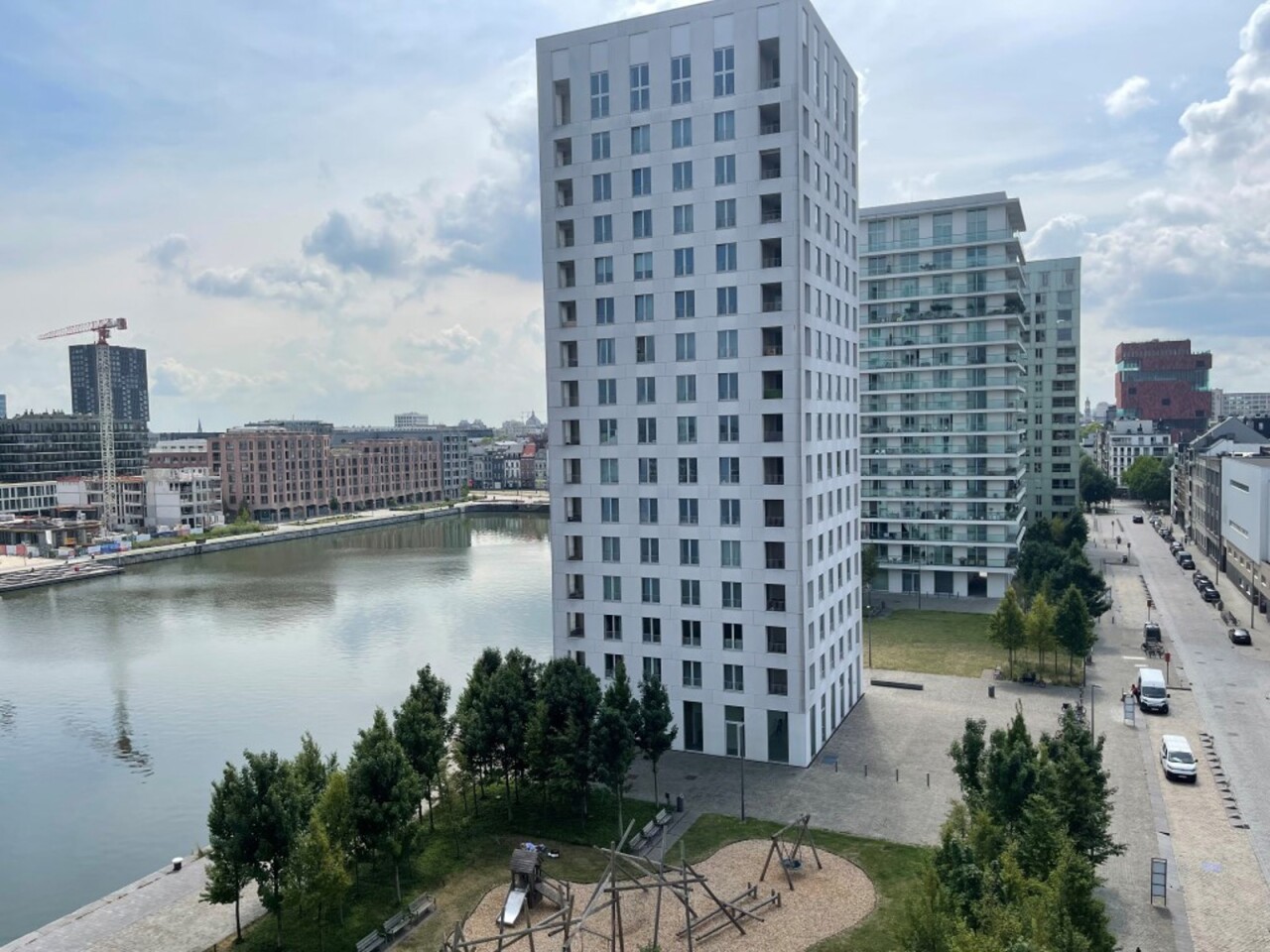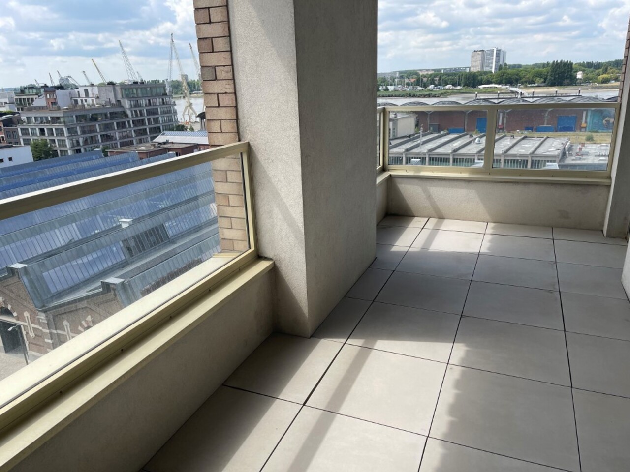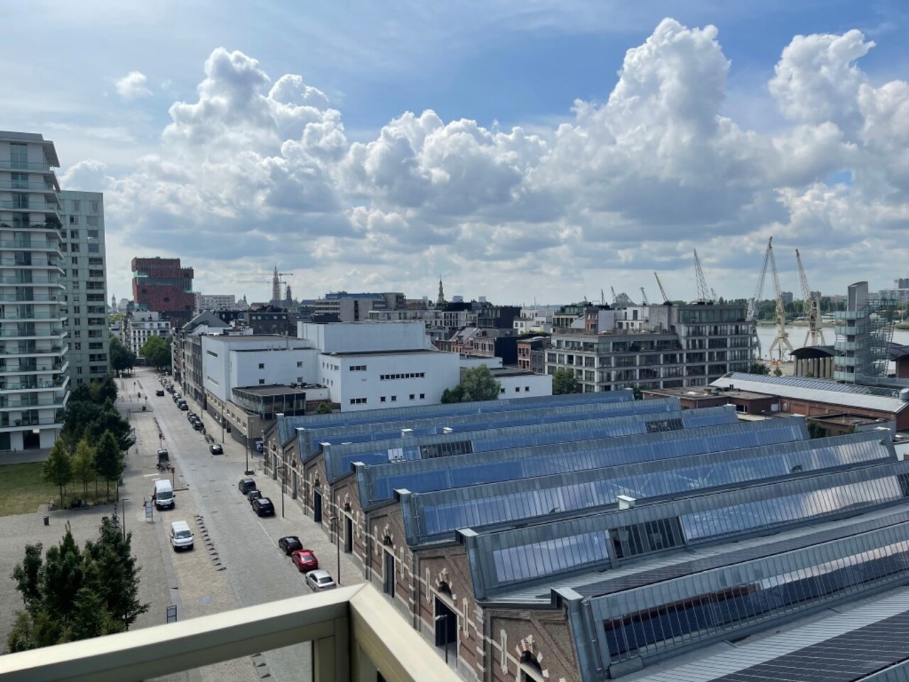 Gelegen op het Eilandje met zicht op de bocht van de Schelde op de zevende verdieping appartement met één slaapkamer . Indeling inkomhal met apart toilet en berging Living met open geinstalleerde keuken keuken , ruim zuidterras , slaapkamer, badkamer met ligbad en lavabo met meubel prijs 369.000 € momenteel verhuurd mogelijk tot aankoop parking aan 35.000 €
