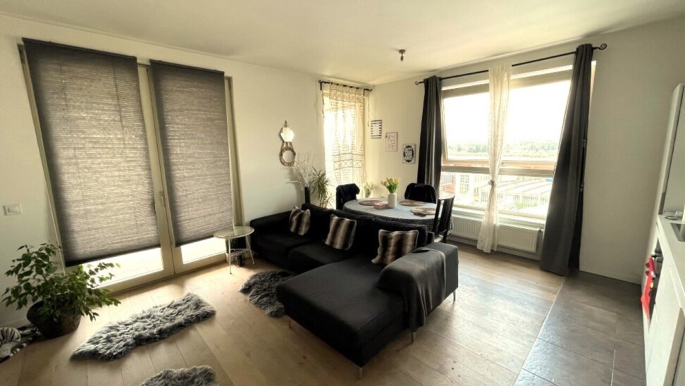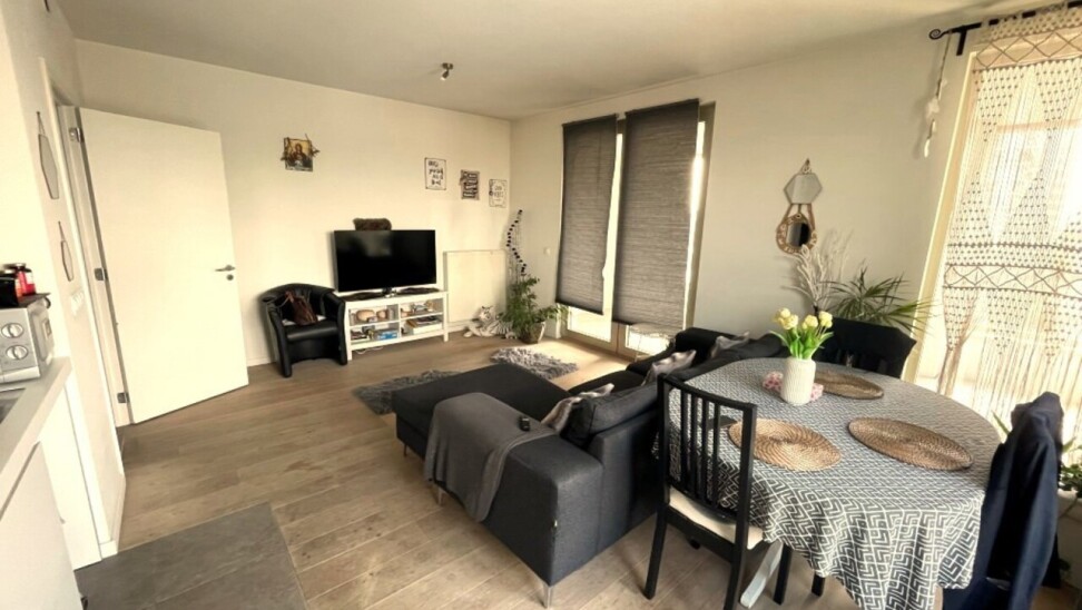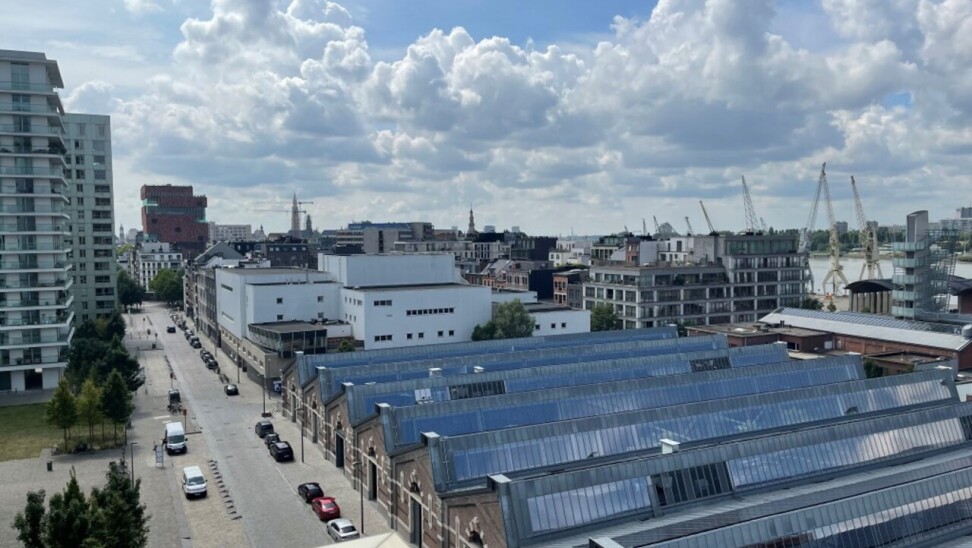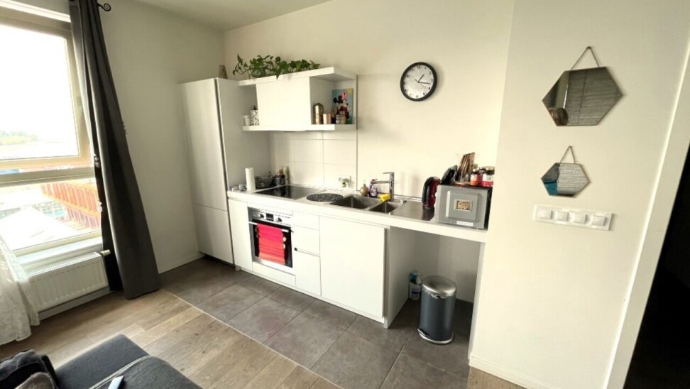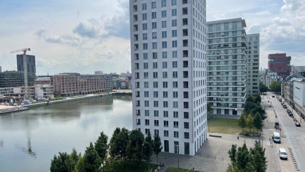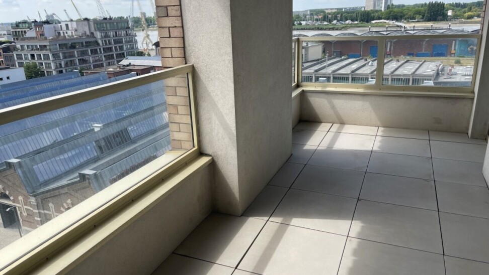 Gelegen op het Eilandje met zicht op de bocht van de Schelde op de zevende verdieping appartement met één slaapkamer . Indeling inkomhal met apart toilet en berging Living met open geinstalleerde keuken keuken , ruim zuidterras , slaapkamer, badkamer met ligbad en lavabo met meubel prijs 369.000 € momenteel verhuurd mogelijk tot aankoop parking aan 35.000 €