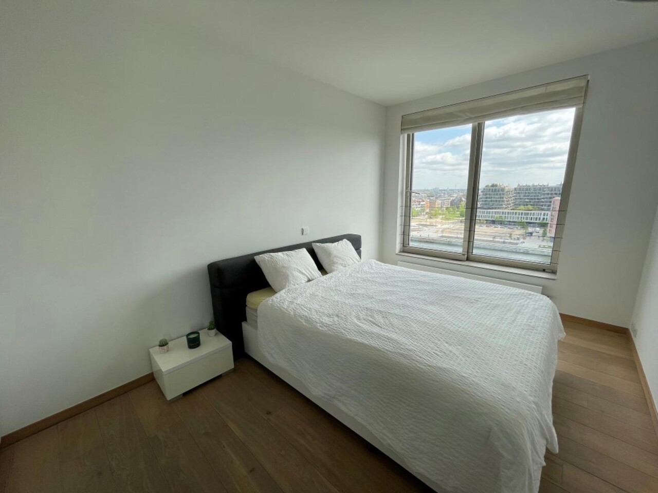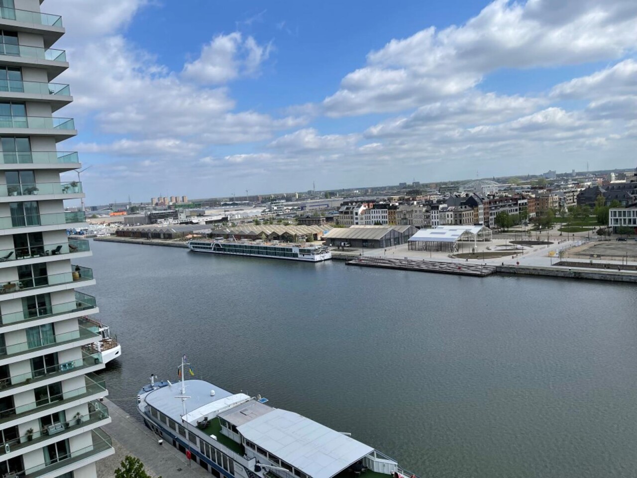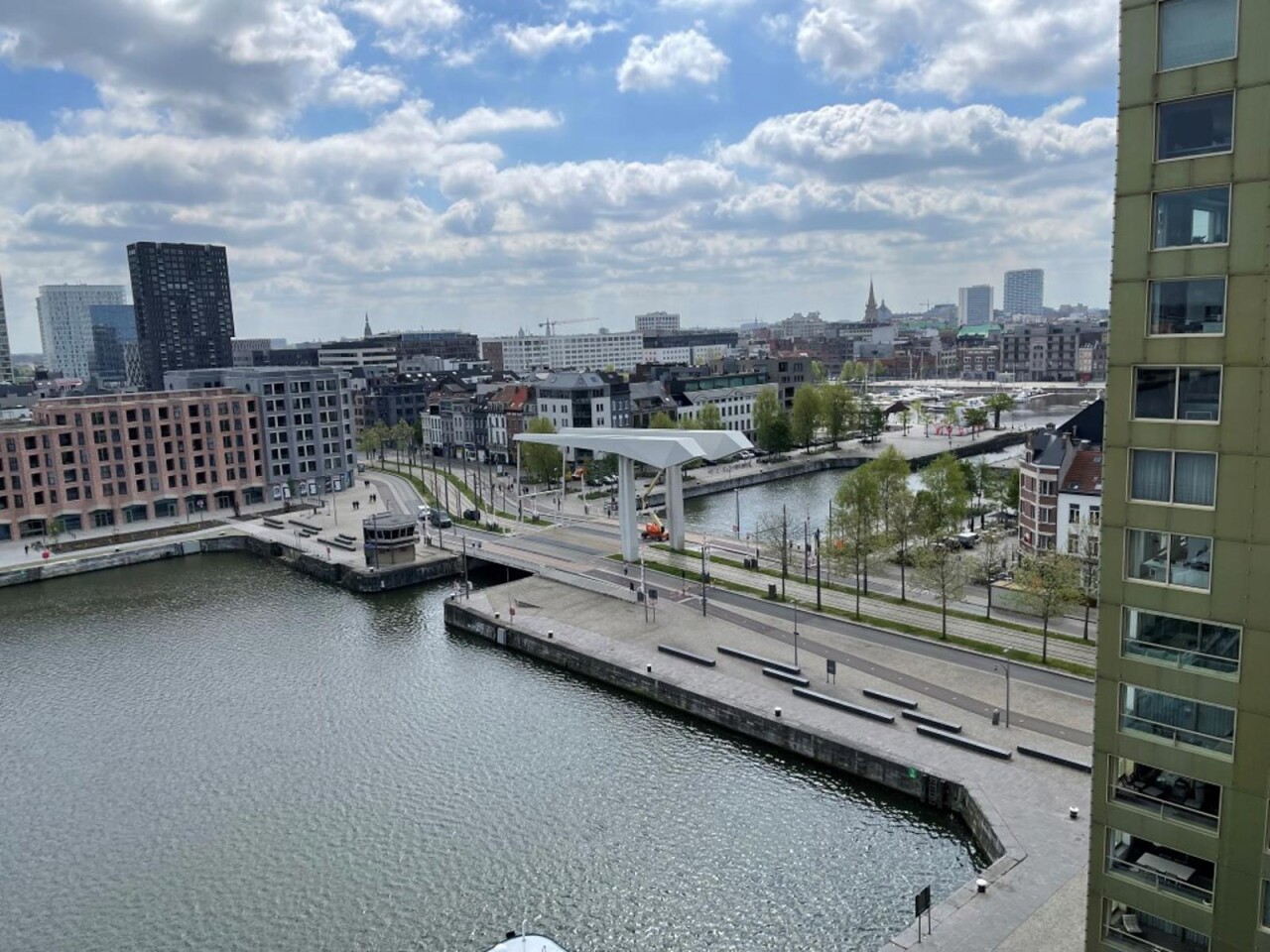 prachtig één slaapkamer appartement gelegen in de 2 de toren van de Westkaai 9 de verd (Eilandje) met zicht op het kattendijkdok voorzien van grote panoramische ramen , indeling : stalen veiligheidsdeur , inkomhal met apart toilet en berging ruime en zeer lichte living met parketvloer en grote raampartijen deze zijn voorzien van extra zonneschermen ,ingerichte open keuken ,aansluitend aan de living zuid-oost terras van 10 m² , 1 slaapkamer voorzien van parketvloeren en badkamer voorzien van dubbele lavabo met kasten ,douche en toilet kelderberging op -2 nr 38 prijs appartement 365.000 € extra staanplaats te koop op -1 aan 38.000 € gemeenschappelijke kosten 130 €
